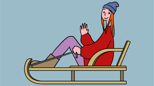 そりに乗っている女性